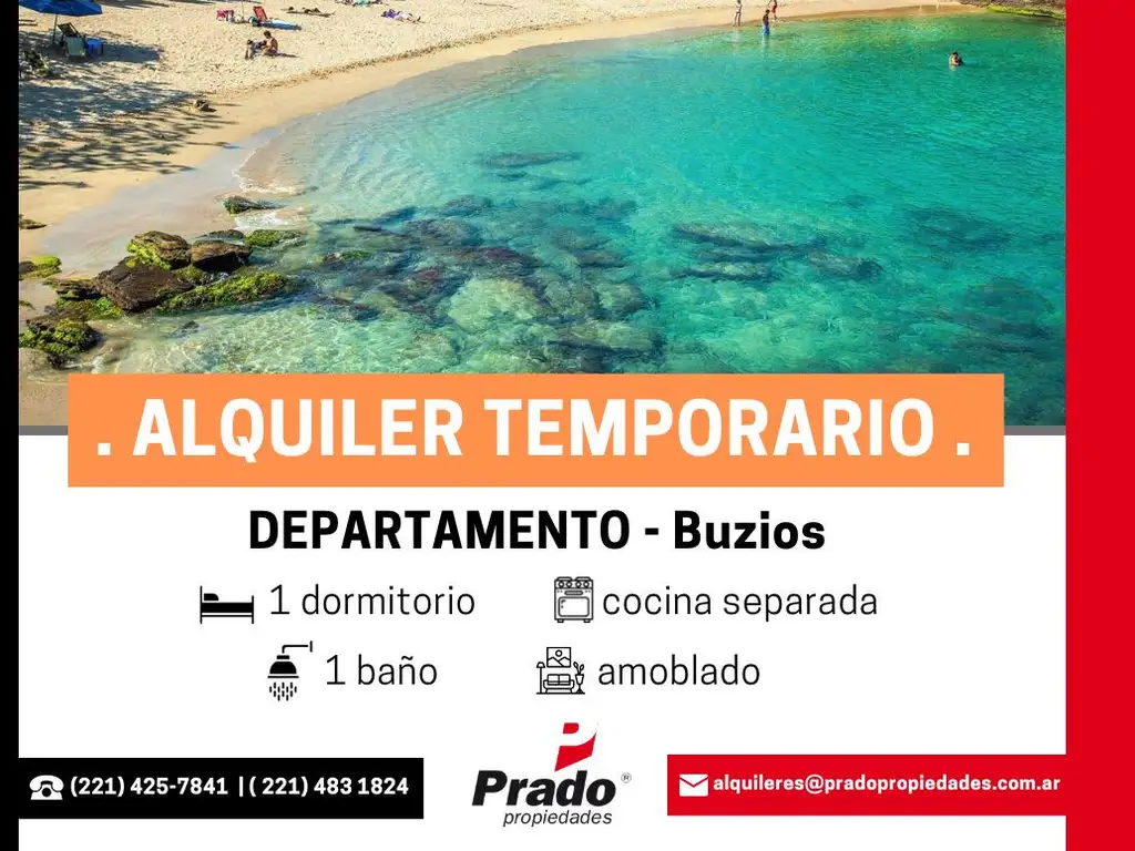 ALQUILER TEMPORAL EN BUZIOS - 1 DORMITORIO - OPORTUNIDAD