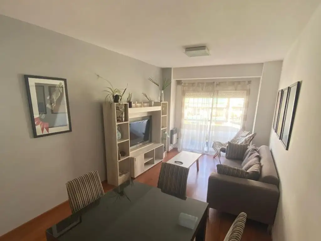 La propiedad esta en el octavo piso, por lo que es muy luminosa, cuenta con amplio living comedor, equipado con sofá cama, mesa ratona, modular y tv de 40 pulgadas y juego de comedor para 4 comensales.