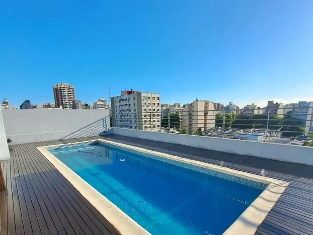 76 m², 3 dormitorios, living, cocina independiente, baño en la planta baja y baño en la planta alta. Todos los dormitorios tienen puertas independientes. La planta baja cuenta con living, dormitorio y cocina. La planta alta tiene 2 dormitorios. El salón dispone de aire acondicionado. Hay calentadores de gas en el salón y el dormitorio de la planta baja. Dos dormitorios tienen camas dobles, cada una con un colchón independiente. Se admiten niños y se aceptan mascotas. El apartamento se encuentra en la planta baja de un edificio (Planta Baja). Es básicamente una casa con pileta en la azotea y cochera (con un coste adicional de 50 USD). El edificio también cuenta con pileta (de hasta 1,5 m de profundidad), parilla y SUM. Se alquila por 12 meses.