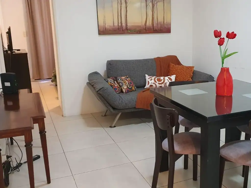 Totalmente Amoblado y equipado para tres personas, con Aire Acondicionado, Heladera con Frezzer , Cocina con Horno, Living comedor con cocina integrada. Balcón aterrazado , laundry en Edificio.