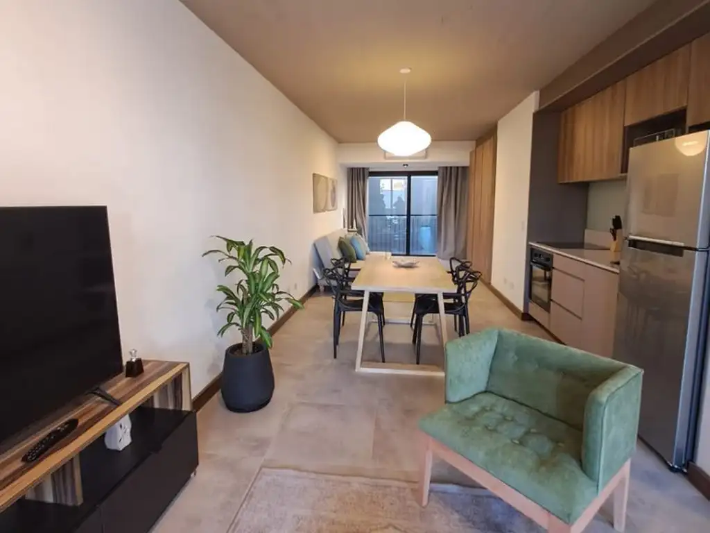 Amoblado y Equipado a Estrenar. Cuenta con lavarropas, heladera con frezer, microondas, aire frio calor,calentador, cocina eléctrica con horno, todo el equipamiento a estrenar, cama Queen size, sofa Cama, TV Smartv, internet y todas las comodidades para una estadía placentera.