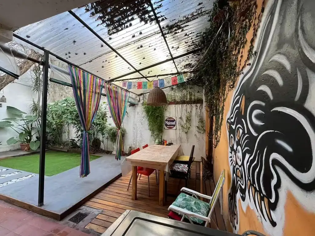 Pisos de madera. Living con escritorio de trabajo. Patio. Cama doble + Camas single + Colchón debajo de la cama. Amplios placares.