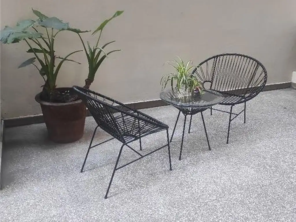 Todos los ambientes dan a la terraza. Cuenta con hall de entrada, living comedor, dormitorio, baño completo y cocina separada. La Calefaccion es individal por estufas, equipos de aire acondicionado split en ambos ambientes. El precio de U$S 450/mes . Mas Gastos. Expensas $ 140.000, Aysa $ 20.812,25 , Wifi $ 31.110 Es un edificio de 40 años ubicado entre las calles Lavalle y Av. Corrientes, cercano a la Av. Callao, cervano a teatros, a 2 cuadras del Subte B y varias lineas de colectivos. Al comienzo del Contrato se debe pagar U$S 40 por limpieza . Se puede alquilar a partir del 15/2/26. No se admiten mascotas. Contacto Nora Garamendy