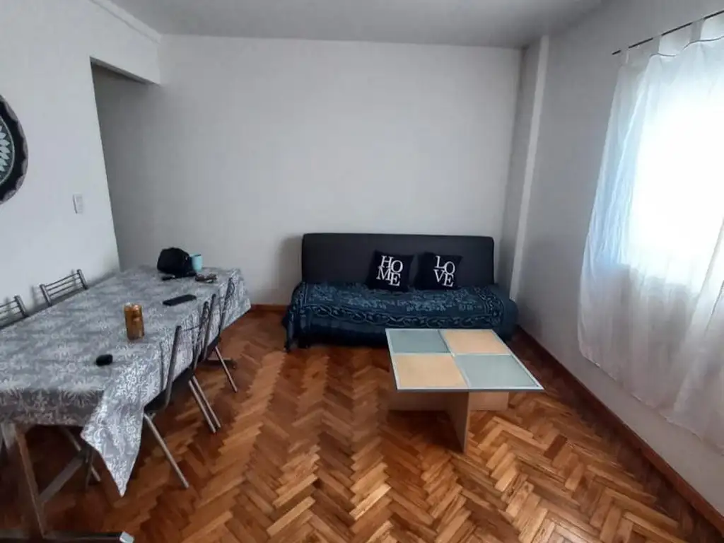 Sillón cama en el living.Cuenta con Aire Acondicionado, Tiene 2 Ventanales 1 al frente a Hipolito Yrigoyen y una ventana en el living que dá a 1 lateral muy luminoso