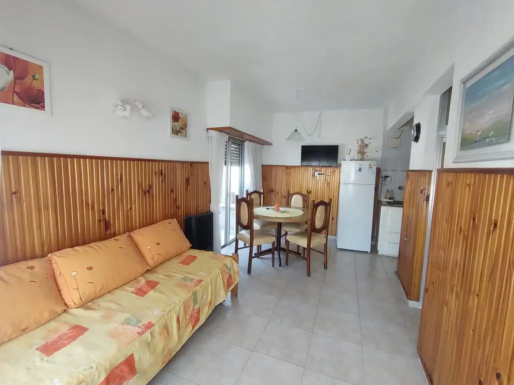 DESCRIPCION Se encuentra en estado inmejorable, especial para vacacionar ya que se encuentra a 50 metros de la playa. El mismo cuenta con living, cocina comedor, baño completo, 1 habitacion (cama matrimonial), placard de amplias dimensiones, balcon con vista al mar, lavadero cubierto y garage cubierto individualizado para cada departamento. Gas Natural