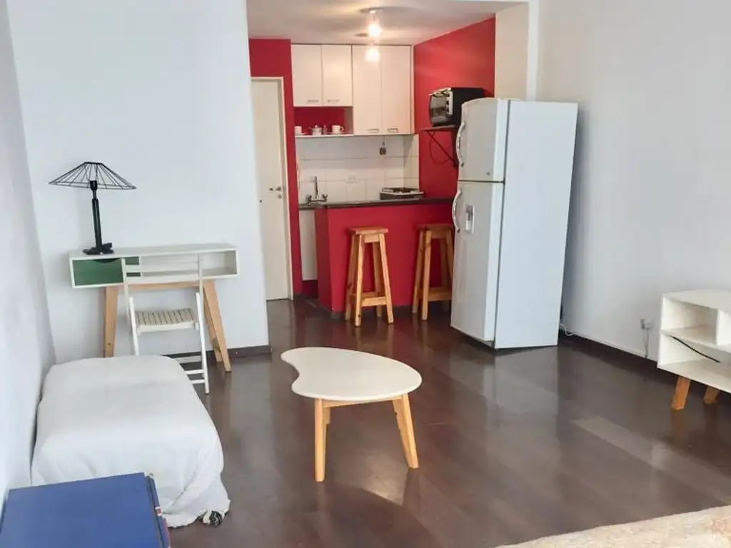 El departamento es es un monoambiente funcional, cómodamente amueblado, aireado y luminoso.