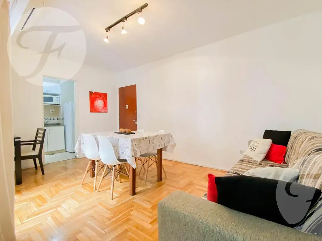 Hermoso 2 ambientes ubicado en el sexto piso al lateral. Cuenta con living comedor, que contiene mesa con sillas, escritorio, Tv y sillón de dos cuerpos. Cocina separada completamente equipada con heladera con frezzer y buena ventilación. Pasillo distribuidor con lugar de guardado, baño completo con ducha y habitación principal de buenas dimensiones con una cama matrimonial, amplio placard y todas las comodidades para una buena estadía.
