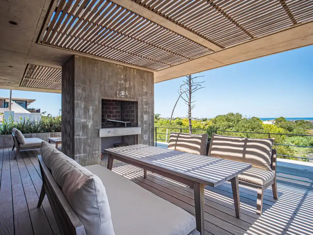4 dormitorios con gran terraza con parrilla con vista al mar. 1 Suite principal con vista al bosque, 2 dormitorios que comparten baño (1 de ellos con vista al mar) y 1 un 4to dormitorio con baño que puede funcionar también como dependencia.