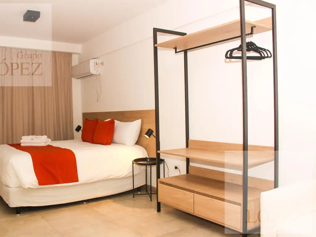 Departamento de un ambiente con balcón A ESTRENAR con amoblamiento y equipamiento de primer nivel. Todas las unidades disponen de baño privado, TV de pantalla plana y cocina totalmente equipada para cocinar.