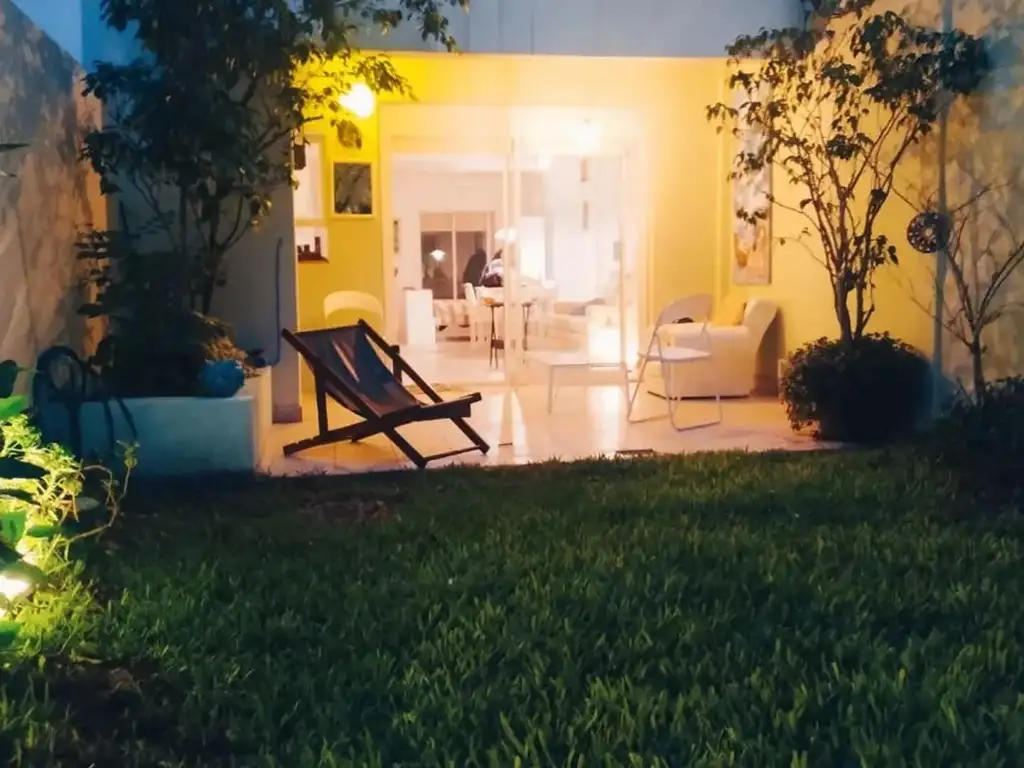 El departamento se encuentra en planta baja, es sumamente luminoso y cuenta con un amplio jardín propio. El área de la cocina está completamente amoblada con alacena y bajo mesada, y equipada con heladera con freezer, cocina a gas, utensilios de cocina y vajilla. Tiene una mesa de comedor con cuatro sillas. Tiene TV led. Cuenta con una cama tamaño matrimonial y un sofá tamaño cama para dos personas. Tiene además roperos y cajoneras con mucho espacio de guardado. El baño es completo con bañera. Incluye sábanas y toallas. Tiene aire acondicionado Inverter.