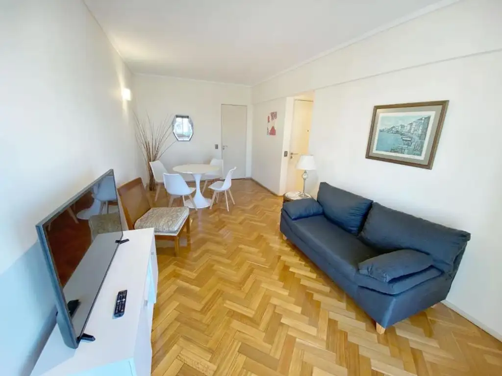 Al ingresar al departamento tenemos un living amplio, con pisos de parque, todo en perfectas condiciones de pintura, cuenta con una mesa de estilo nórdico color blanca con 4 Sillas, sillón negro, mueble de tv con su tv, decorado con cuadro , un velador, en el living se encuentra el aire acondicionado, el living cuenta con salida directo al balcón muy luminoso. La cocina cuenta con mesada de mármol, alacena y bajo mesada muy modernos, con cocina, heladera grande, microondas, pava eléctrica, tostadora, con ventana al lateral, cuenta con un lavadero en el sector de la cocina con una pileta y lavarropas automático. La Habitación principal cuenta con pisos de parque, cama matrimonial, con sabanas, mesa de luz en ambos lados de la cama de estilo nórdico, cuenta con placar grande con espejos, ventanal grande que da al costado de la cama con gran vista. Habitación secundaria cuenta con pisos de parque, con cama de una plaza, con placar. Baño completo con bañera, bidet, espejo con luces, lava manos, todo con sus griferías. Balcón grande. Cuenta con toallas, ropa de cama.