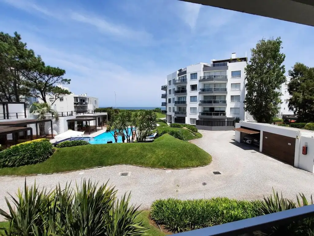 Unidad de 3 Dormitorios, 1 en suite, 2 baños, baño social, Cocina Integrada, Living Comedor con acceso al balcón con vista al mar y cochera.
