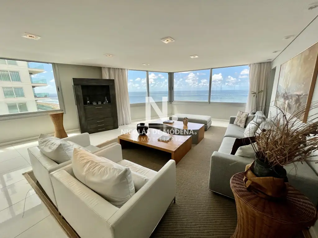 Cuenta con 3 dormitorios en suite (dormitorio principal con vista al mar, hydro, doble walk-in closet y ducha), toilette para invitados, dependencia de servicio, amplio y luminoso living-comedor con terraza integrada, sala de estar con TV, espectacular cocina con comedor diario, laundry. Dos bauleras y garaje para dos coches.