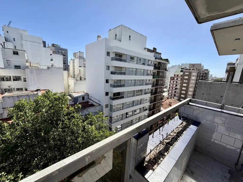 El departamento presenta un generoso ambiente a la calle con balcón saliente
