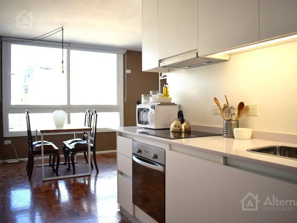 Cuenta con un toilette de recepción, cocina completa, living comedor con mesa para cuatro personas y sillón de dos cuerpos, ventanas con doble vidrio lo que lo hace sumamente silencioso y luminoso.