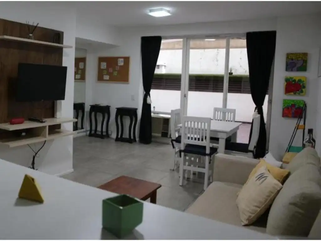 El ambiente es muy luminoso y espacioso. El Living-comedor es muy agradable, cuenta con smart tv instalada, sofá cama y ventanal con salida al patio, lo que permite que sea muy aireado. Cocina completa con conexión a gas.