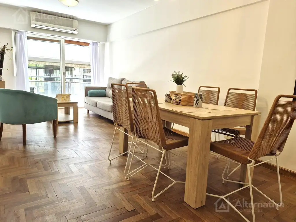 Amplio y luminoso departamento de 4 ambientes, ideal para familias o estadías prolongadas. Cuenta con un cómodo living-comedor con salida al balcón, perfecto para disfrutar del aire libre y la luz natural.