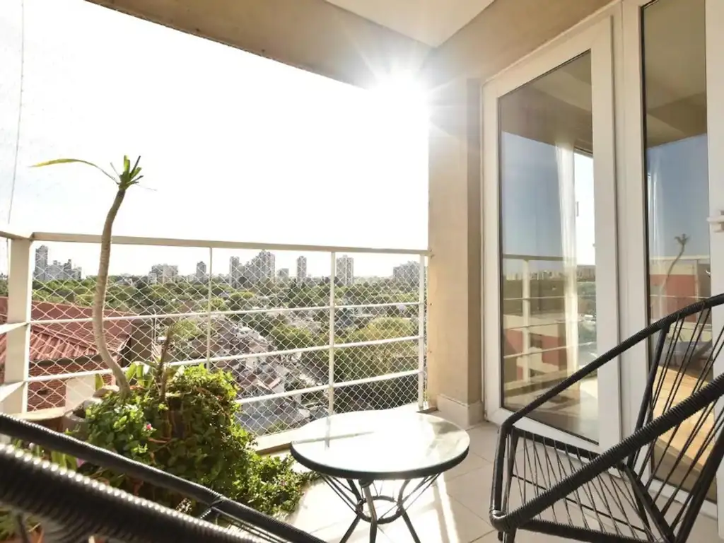 Exterior: Amplio balcón corrido con acceso desde living y dormitorio. Vistas abiertas.