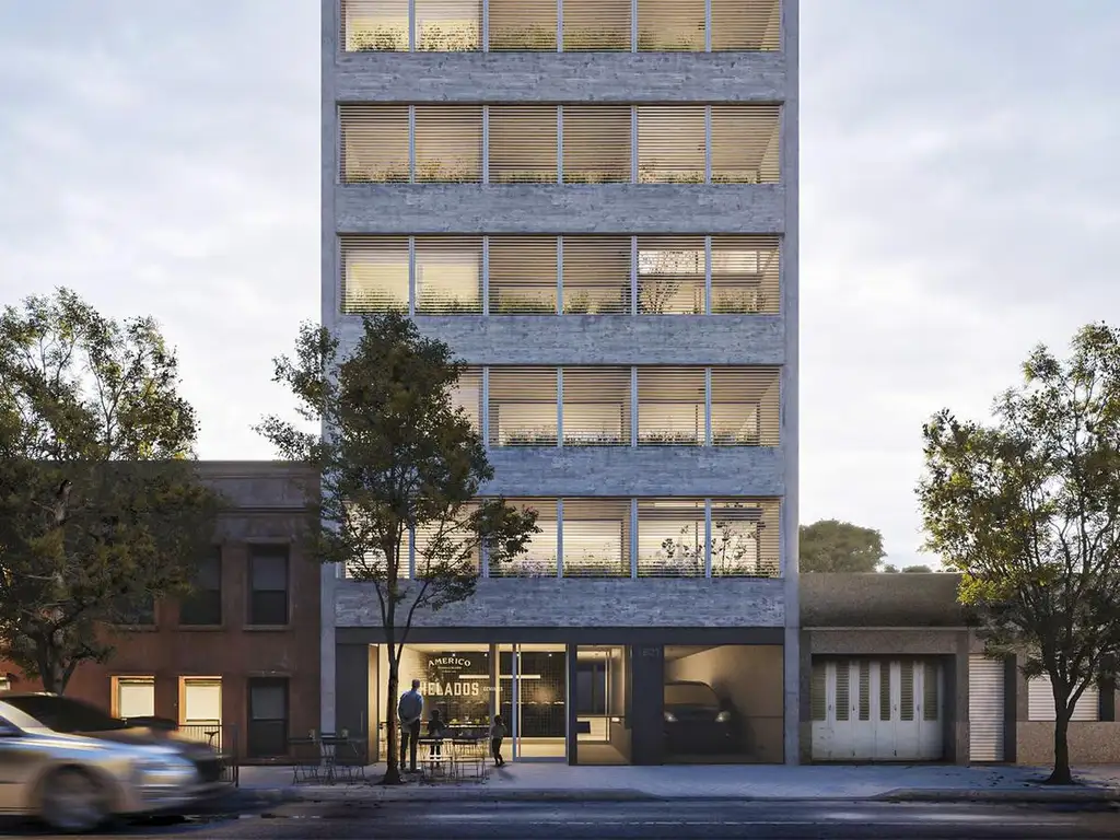 Edificio de planta baja más 6 pisos con local comercial, 2 niveles de cocheras por rampa móvil y viviendas en 6 plantas con monoambientes, 1 y 2 dormitorios. último piso con unidades de terrazas exclusivos, unidades dúplex de 1 dormitorio, piso 1 con unidad con patio y parrillero. Control de acceso. 1 ascensor.