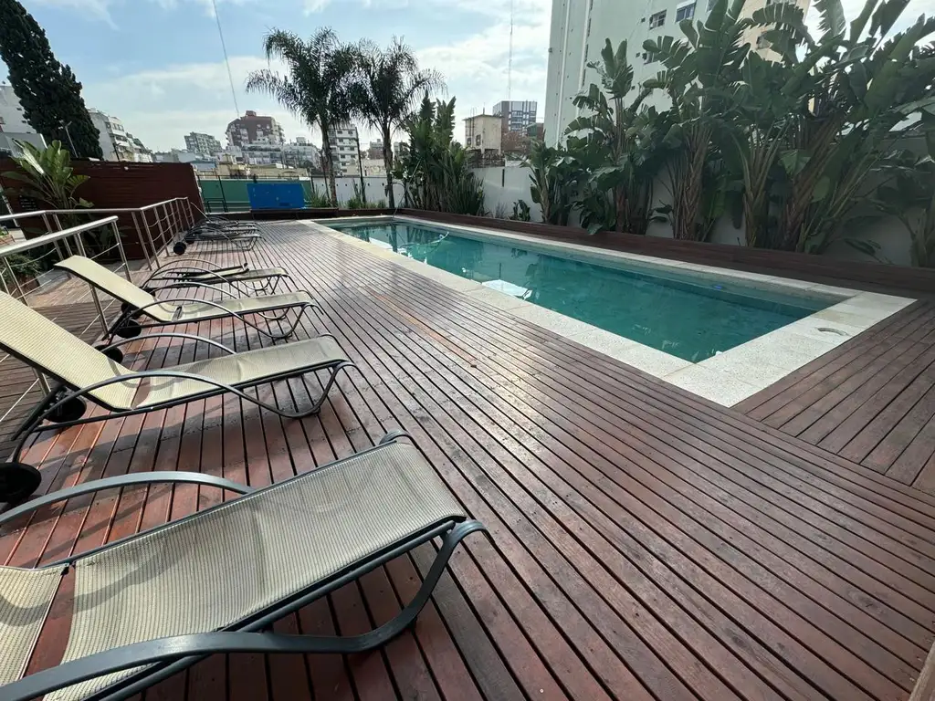 - Pileta con un hermoso deck de madera y cómodas reposeras.