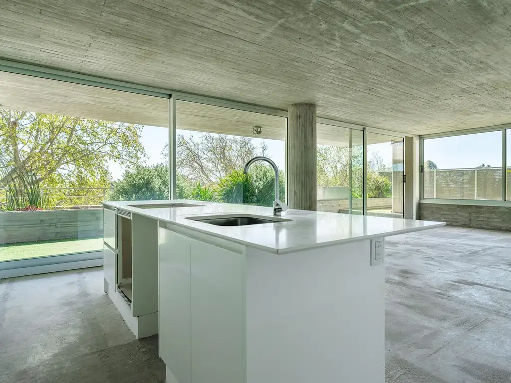 FICHA TéCNICA: Terminaciones: Calidad y diseño de vanguardia con el más alto detalle constructivo, enfocado en una arquitectura limpia y pura con 3 materiales primarios: hormigón, madera y vidrio. Terrazas al norte con vista al río. Balcones con vista a la ciudad. Interiores de hormigón visto. Ventilaciones cruzadas. Pisos de ingeniería en estar, cocina y dormitorios. Aberturas de aluminio negro con vidrios DVH. Calefacción por aire con equipos ya instalados en cada ambiente. Dormitorio principal en suite con vestidor. Baños con excelente estilo arquitectónico con lozas sanitarias y griferías de primeras marcas. Cocina con isla y mueble de guardado de piso a techo. Horno y anafe eléctrico. Lavadero y despensa. Iluminación: artefactos de balcones, tomas y llaves.