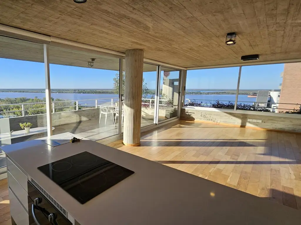 Tipologías: Departamento de 3 dormitorios, principal en suite, 2 baños completos y toilette. Cuenta con doble circulación, cocina con living comedor integrado y gran balcón terraza con vista franca al Río. Materiales de alta calidad edilicia, pisos de ingeniería en estar, cocina y dormitorios, horno y anafe eléctricos, lavadero y despensa independientes y cocina con isla y mueble de alacena y bajo mesada calidad premium.