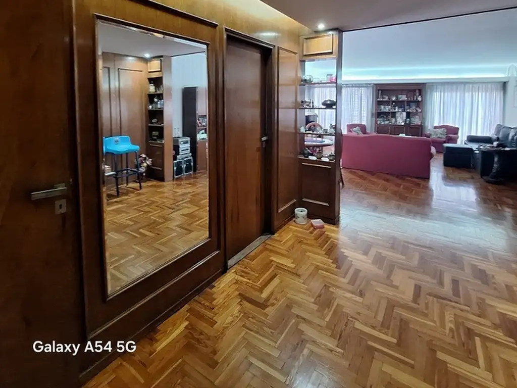Gran living comedor con pisos de parquet y múltiples ventanales que aportan una luminosidad natural excepcional.