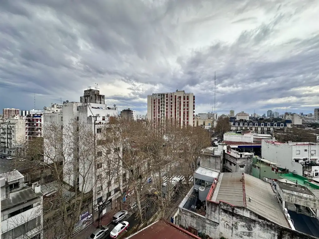Balcón amplio orientado al noroeste, con fuga hacia la derecha a Av. Caseros y todo el norte del barrio