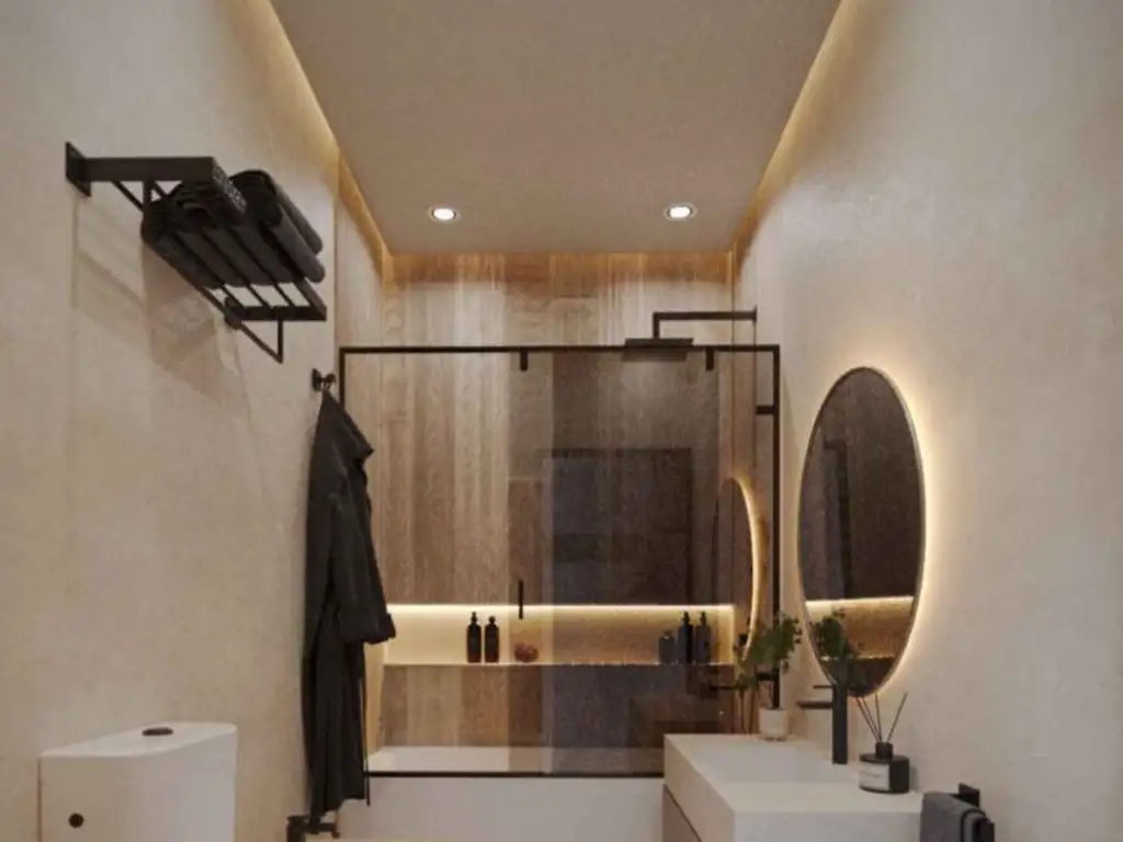 En el piso 9, se encuentra un exclusivo departamento de 2 ambientes con las mismas características de confort que el resto de las unidades, incluyendo la habitación en suite con vestidor. Además, este piso alberga el SUM (Salón de Usos Múltiples) con parrilla y solarium, un espacio común ideal para reuniones y eventos, con vistas privilegiadas de la ciudad.