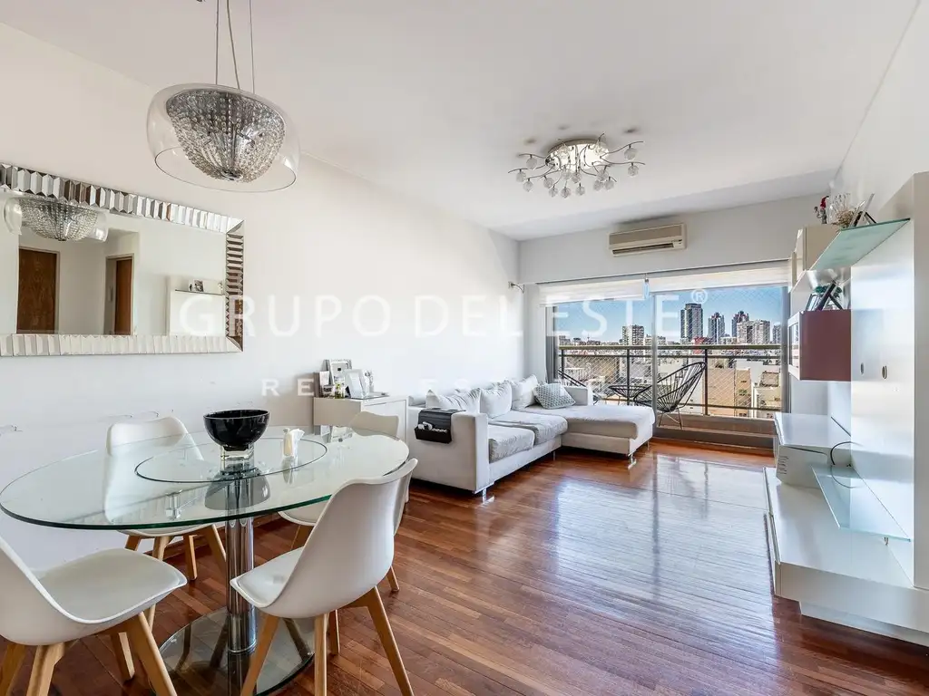 La unidad ofrece un living-comedor amplio con balcón y vista abierta, dos dormitorios con placares espejados, cocina funcional y dos bauleras, un plus difícil de encontrar.
