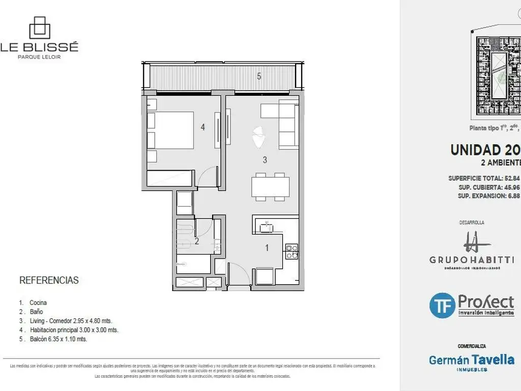 Unidad de 52,84 m2 totales; ubicada en 2do. piso.