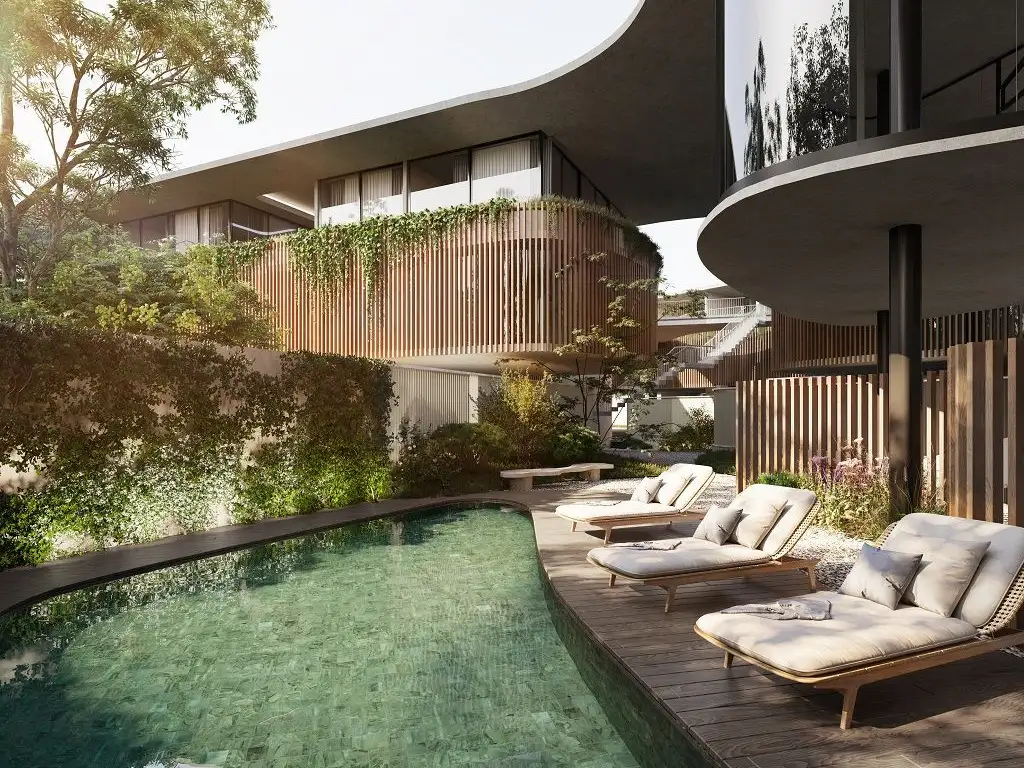 Sus dos plazas orgánicas, generan un recorrido arquitectónico fluido entre su vegetación, sus jardines y balcones privados, que invitan a sus habitantes a disfrutar del aire libre y la luz natural. Los espacios exteriores se integran a los interiores.