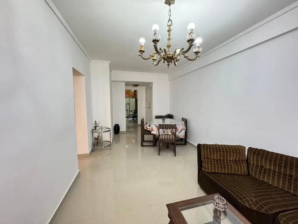 A continuación se desarrolla el livingcomedor, con toilette de recepción y pisos de porcelanato nuevos. Este ambiente cuenta además con una entrada independiente desde el palier. Desde el living se accede a un amplio patio techado y, seguidamente, a un segundo patio descubierto, brindando una excelente superficie de aire y luz.
