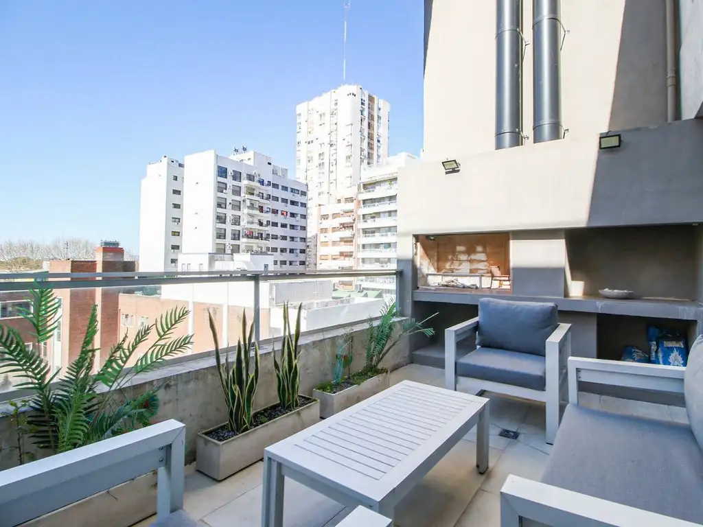 La gran terraza propia con parrilla es el corazón de este dúplex: un espacio único para disfrutar del aire libre, reuniones con amigos y momentos familiares.