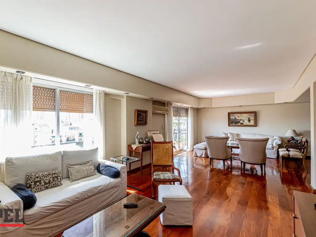Consta de palier privado, hall de entrada, amplio living comedor con salida a balcón corrido al frente, toilette, dormitorio principal en suite, dos dormitorios, dos baños completos, amplia cocina, dependencia y baño de servicio, lavadero, baulera.