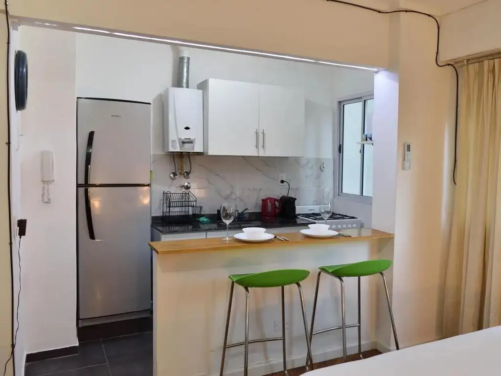 EL MISMO CONSTA DE: LIVING/DORMITORIO , AMPLIA COCINA TIPO AMERICANA CON DESAYUNADOR, BAñO COMPLETO CON BAñERA. MUY LUMINOSO Y TOTALMENTE REFORMADO A NUEVO HACE UN AñO. (CONSULTAR POR OPCIóN DE COMPRA AMOBLADO Y EQUIPADO)