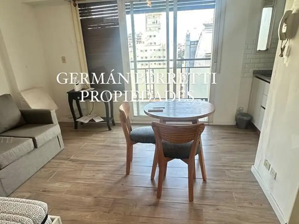 Living amplio con baño completo, cocina integrada y salida a un cómodo balcón al frente, con vista panoramica.