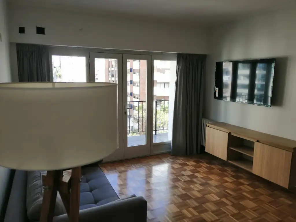 La unidad cuenta con un amplio living comedor amoblado, con ventanales al final del mismo que dan salida al balcon al frente.