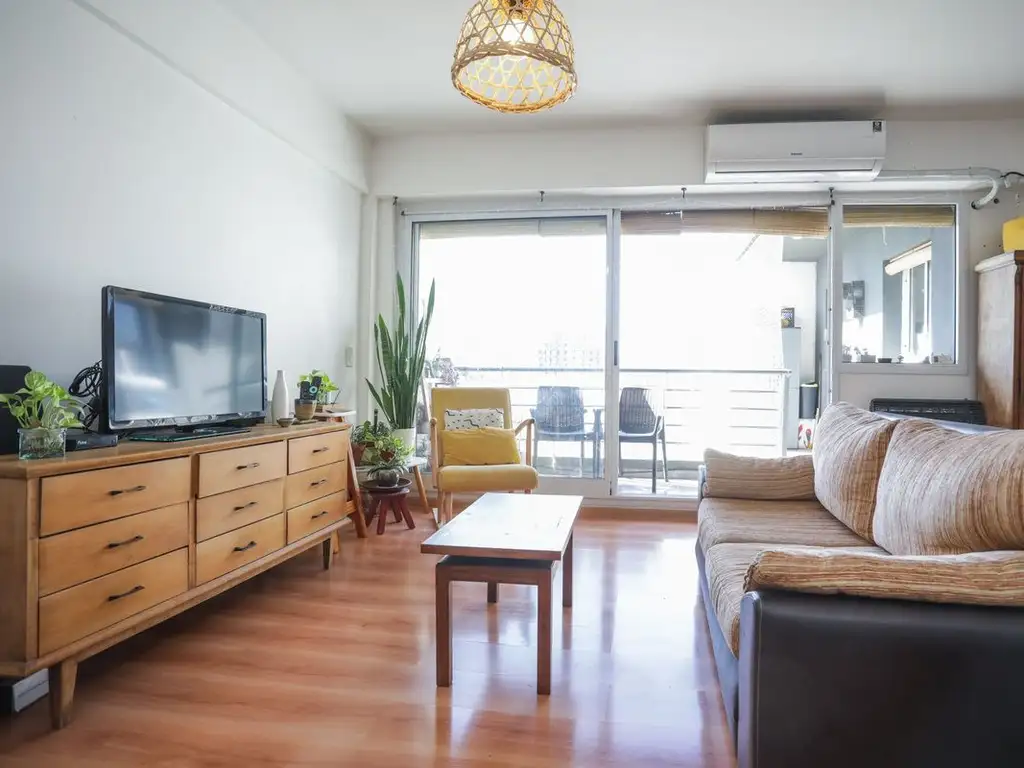 El generoso living comedor es el centro de este hogar, un espacio ideal para reuniones con amigos o simplemente para disfrutar de un gran espacio para el día a día. La cocina integrada y el balcón con encanto completan este piso de 3 ambientes.