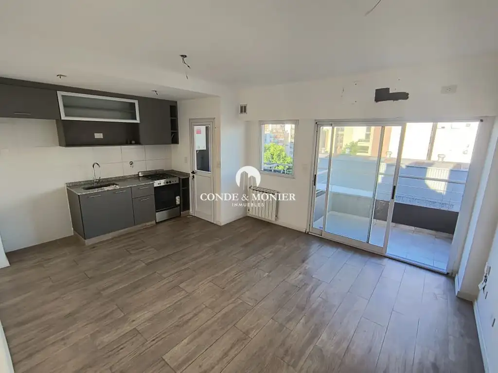 Excelente semipiso de categoría, 3 años de antigüedad, living comedor con cocina integrada con muebles altos y bajos, balcón al contrafrente, lavadero separado semicubierto, sistema de calefacción y agua caliente mediante caldera individual marca Peisa con radiadores en todos los ambientes, baño completo con antebaño, dormitorio con placard, los pisos son de porcelanato marca Ilva y los cerramientos en aluminio con sistema DVH, instalación preparada para aire acondicionado en dormitorio y living comedor, tanto las unidades como sus ambientes son luminosos y ventilados, a cuatro cuadras del Parque Centenario. El edificio cuenta con una terraza con baño de uso común.