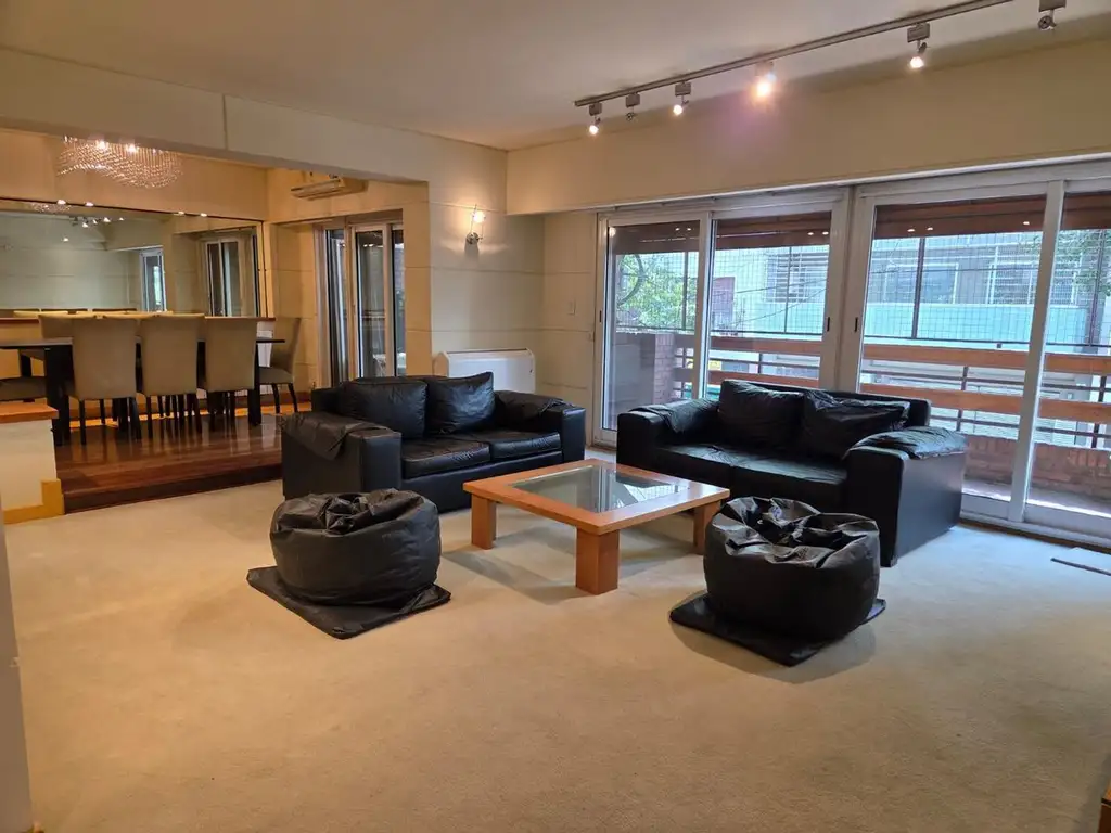 - Living conectado a un comedor de generosas dimensiones. Ambos ambientes cuentan con cortinas eléctricas y salida a un imponente balcón corrido con vista abierta. Todas las aberturas del departamento están equipadas con sistema DVH (doble vidrio hermético) y mosquiteros.