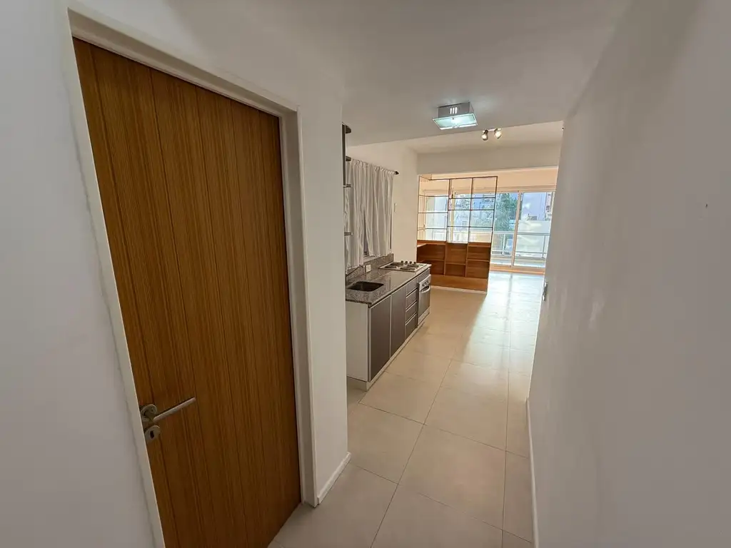 La unidad presenta una disposición funcional y bien aprovechada, integrando los distintos espacios en un ambiente cómodo y luminoso. Al ingresar, nos encontramos con un placar/armario de recepción, seguido del acceso al baño completo. La cocina se integra al ambiente principal, que funciona como espacio de estar y mediante un divisor se define el dormitorio, con salida directa al balcón, aportando ventilación y luz natural.