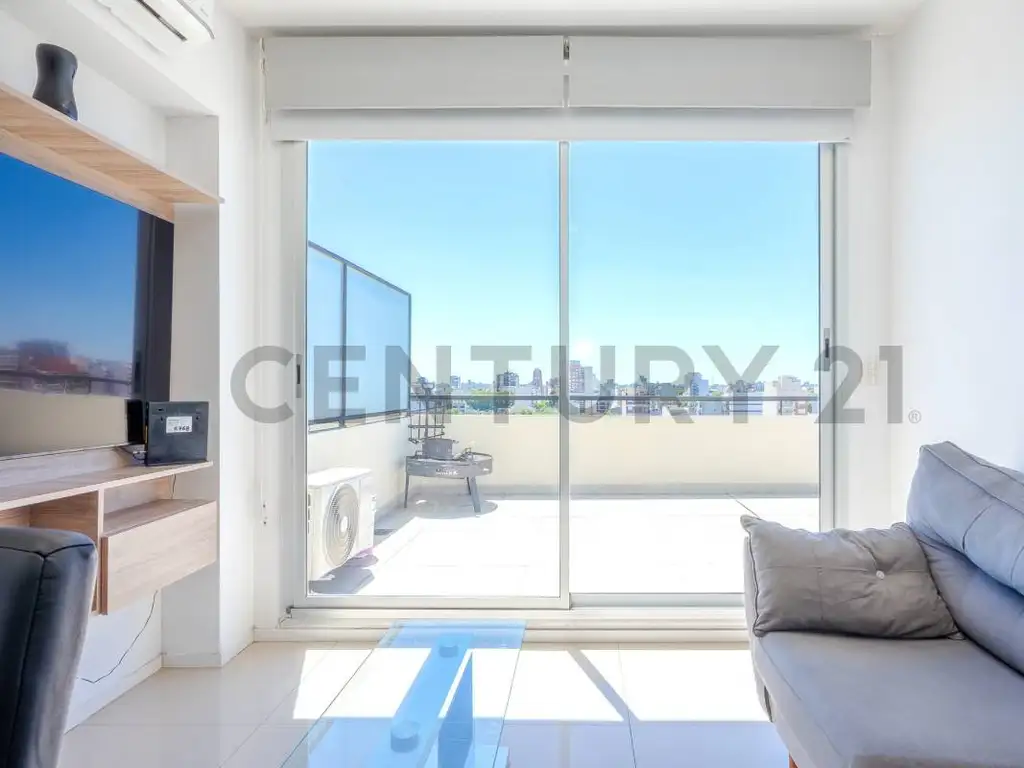 Al ingresar encontramos el living con cocina integrada, anafe eléctrico y una grán iluminación ya que todo su lateral es vidriado con salida al balcón.