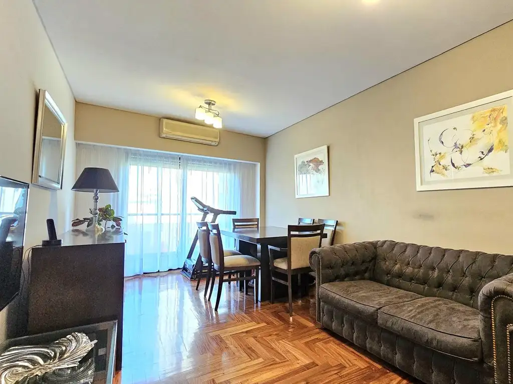 El departamento cuenta con living comedor con salida al balcón corrido al frente, dos dormitorios con placares incorporados, baño completo, cocina con comedor diario y lavadero independiente. Pisos de parquet en perfecto estado.