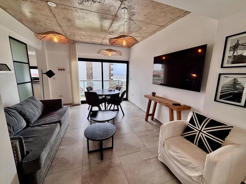 DEPARTAMENTO DOS AMBIENTES A ESTRENAR DECORADO CON MOBILIARIO DE CATEGORÍA CON VISTA AL MAR Y COCHERA CUBIERTA. CUENTA CON UN ANTE BAÑO Y BAÑO COMPLETO.