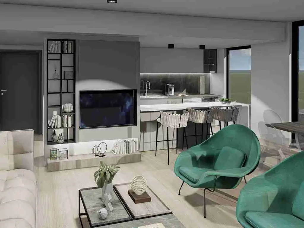 - Cocina integrada con barra desayunadora y conexión para lavarropas.