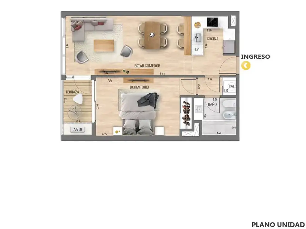 • 2 ambientes