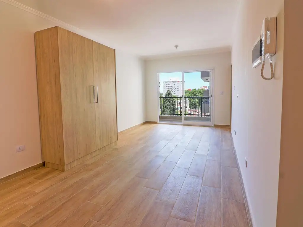 Departamento monoambiente, disposición contrafrente, con balcón.