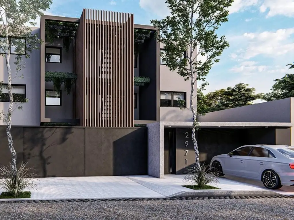 TERMINACIONES: Pisos y revestimientos de porcelanato en primera marca y zócalos. Amoblamientos de cocina con bajo mesada y alacenas en melamina y cocina compacta. Encimeras de cocina en granito natural macizo de 2cm de espesor total. Bachas y Griferías en acero inoxidable en cocinas . Porcelana sanitaria blanca para baños en primera marca , Ferrum o similar. Frentes de placares en dormitorios e interiores en melamina. Provisión de instalación eléctrica completa para la futura colocación de artefactos. Provisión de instalación completa embutida para futuros equipo de aire Frio - Calor.