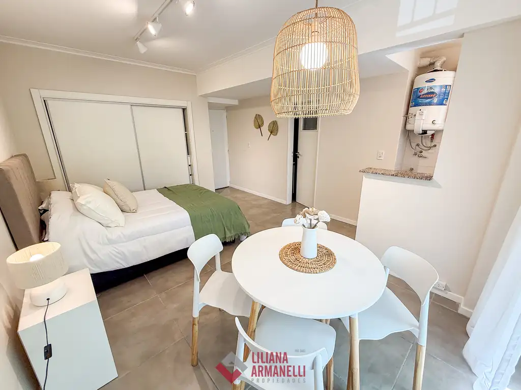 Departamento de 1 ambiente totalmente reciclado. Amplio con balcón saliente a la calle. Vereda de sol. Cocina integrada. Placard. Baño completo con mampara. Muebles a estrenar. Vereda de sol. 28 mts. Ubicado en Moreno y San Luis.
